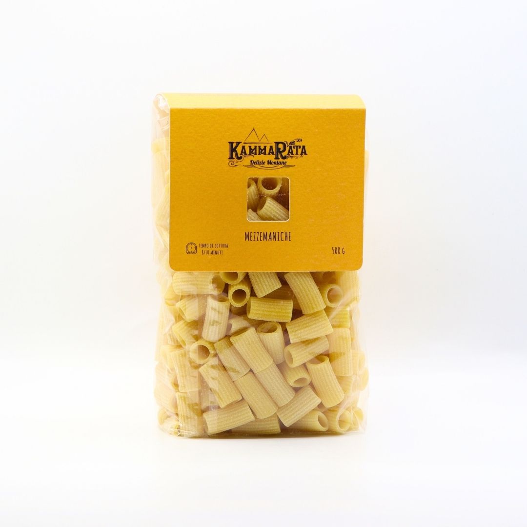 Le Mezze maniche rigate KammaRata Delizie Montane sono un formato corposo e robusto che assorbe il condimento e nello stesso tempo tiene la cottura, cosa che le rende perfette per paste al forno o da saltare in padella. Provate le Mezze maniche rigate KammaRata con le melanzane e la ricotta salata in una sontuosa pasta alla Norma o con un cremoso sugo ai peperoni? Per le Mezze maniche l’estate è la stagione giusta. In qualunque modo la condiate con la Pasta Artigianale Siciliana Mezze maniche rigate KammaRata non si sbaglia mai